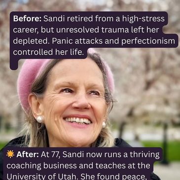 After: Today, I run a thriving coaching practice, teach at the University of Utah, and live with peace, joy, and purpose. I didn’t just survive—I reinvented my life. And now I help others do the same.